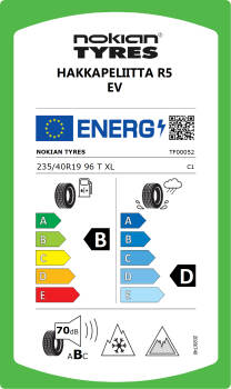 Nokian Tyres Hakkapeliitta R5 EV är ett nordiskt dubbfritt vinterdäck för personbilar, crossovers och SUV:ar. Hakkapeliitta R5 EV har designats och tagits fram med hjälp av miljövänlig teknologi och erbjuder maximal säkerhet, komfort och ökad räckvidd för el- och hybridfordon. Klassens bästa isprestanda garanteras av unika Arctic Grip Crystals, och de imponerande funktionerna för komfort ingår i Nokian Tyres SilentDrive™-teknologin.